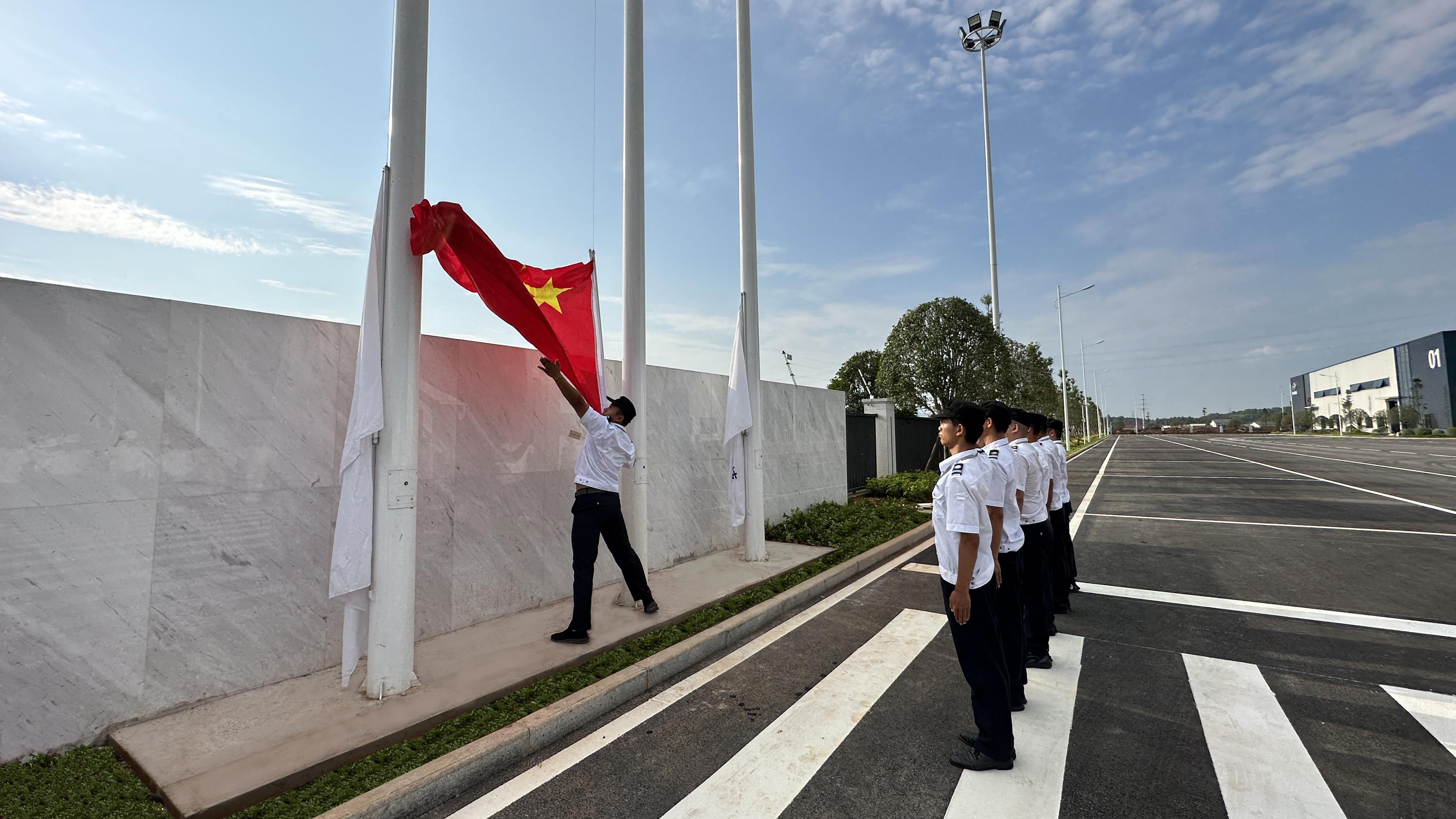 今天7時30分,鑫政科技新能源產(chǎn)業(yè)園舉行升旗儀式,